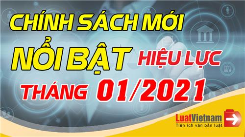 Trên đây là một số chính sách mới có hiệu lực tháng 01/2021. Ngoài ra còn rất nhiều văn bản tiêu biểu có hiệu lực trong tháng này.