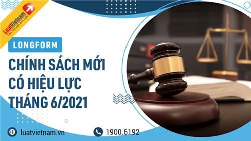 Nửa năm 2021 đã sắp qua đi. Những quy định, chính sách mới nổi bật có hiệu lực trong tháng 6/2021 sẽ được LuatVietnam đề cập dưới đây.