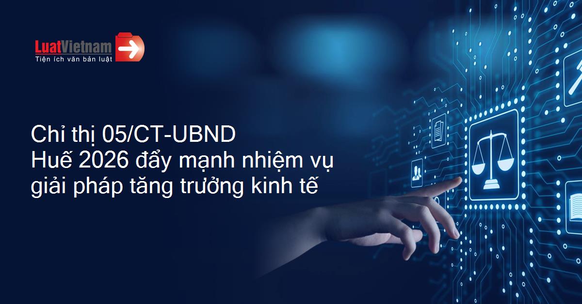 Chỉ thị 05/CT-UBND của Ủy ban nhân dân thành phố Huế về việc đẩy mạnh một số nhiệm vụ, giải pháp trọng tâm thực hiện mục tiêu tăng trưởng kinh tế năm 2026