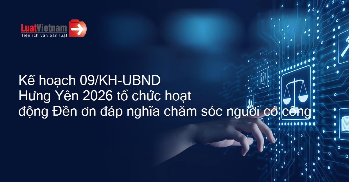 Kế hoạch 09/KH-UBND của Ủy ban nhân dân tỉnh Hưng Yên tổ chức các hoạt động Đền ơn đáp nghĩa, chăm sóc người có công với cách mạng nhân dịp Tết Nguyên đán Bính Ngọ năm 2026
