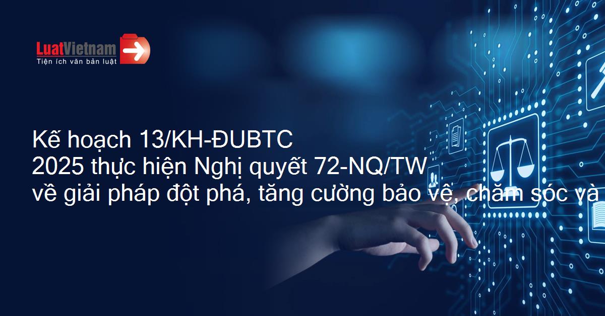 Kế hoạch 13/KH-ĐUBTC 2025 thực hiện Nghị quyết 72-NQ/TW về giải pháp đột phá, tăng cường bảo vệ, chăm sóc và nâng cao sức khoẻ Nhân dân