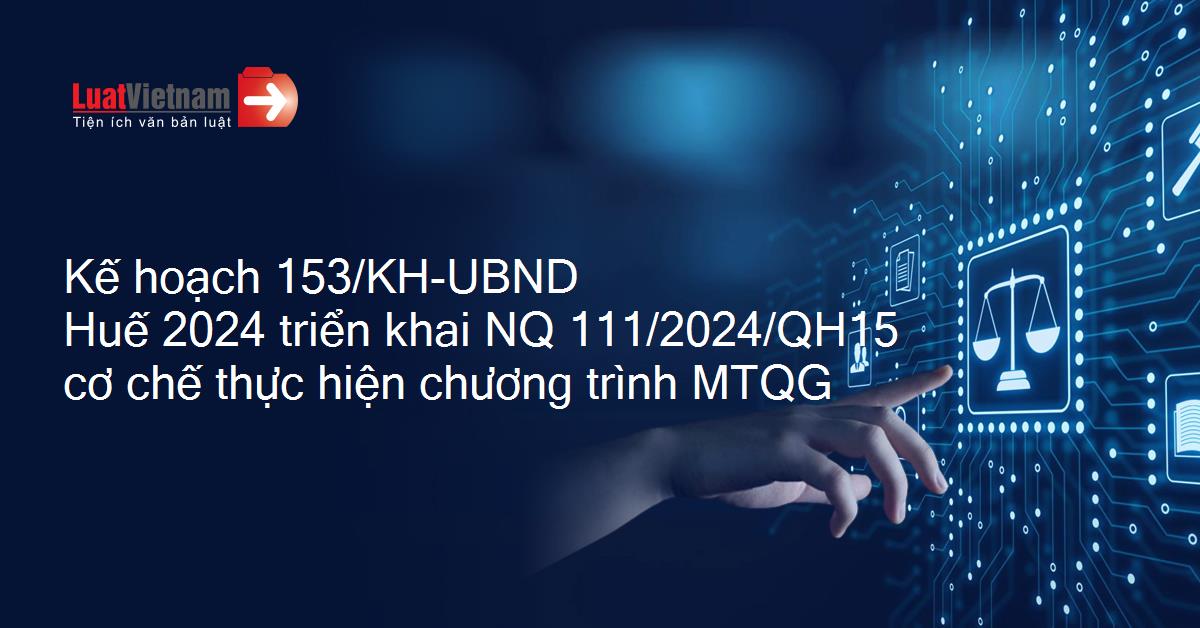 Kế hoạch 153/KH-UBND Huế 2024 triển khai NQ 111/2024/QH15 cơ chế thực hiện chương trình MTQG