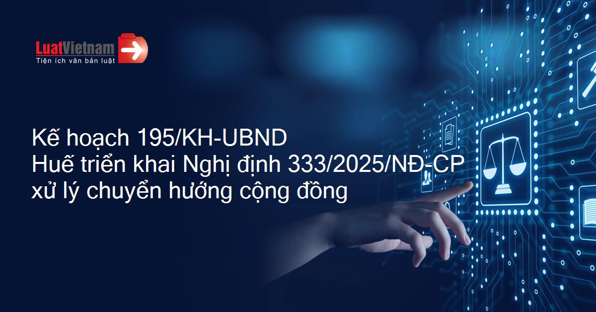 Kế hoạch 195/KH-UBND Huế triển khai Nghị định 333/2025/NĐ-CP xử lý chuyển hướng cộng đồng
