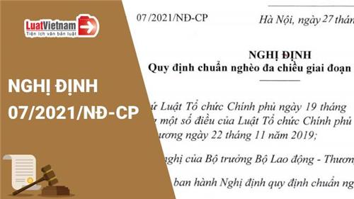 Ngày 27/01/2021, Chính phủ đã ban hành Nghị định 07/2021/NĐ-CP quy định chuẩn nghèo đa chiều giai đoạn 2021 - 2025
