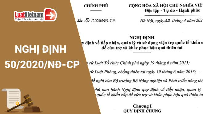 Ngày 20/4/2020, Chính phủ ban hành Nghị định 50/2020/NĐ-CP quy định về tiếp nhận, quản lý và sử dụng viện trợ quốc tế khẩn cấp để cứu trợ và khắc phục hậu quả thiên tai.