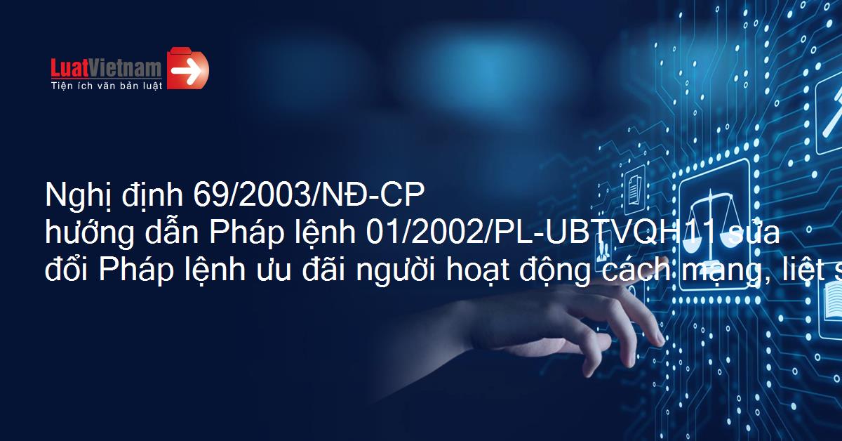 Nghị định 69/2003/NĐ-CP hướng dẫn Pháp lệnh 01/2002/PL-UBTVQH11 sửa đổi Pháp lệnh ưu đãi người hoạt động cách mạng, liệt sĩ và gia đình liệt sĩ, thương binh, bệnh binh, người hoạt động kháng chiến, người có công giúp đỡ cách mạng