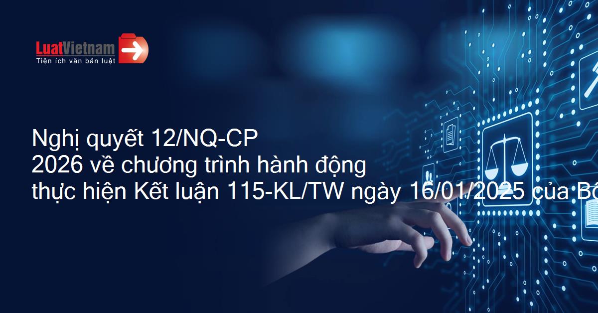 Nghị quyết 12/NQ-CP 2026 về chương trình hành động thực hiện Kết luận 115-KL/TW ngày 16/01/2025 của Bộ Chính trị về nâng cao hiệu quả quản lý, khai thác, sử dụng và phát huy các nguồn lực của nền kinh tế