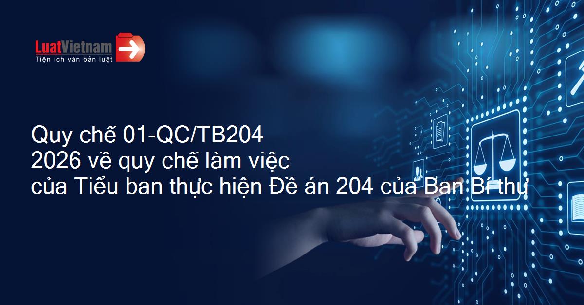 Quy chế 01-QC/TB204 2026 về quy chế làm việc của Tiểu ban thực hiện Đề án 204 của Ban Bí thư