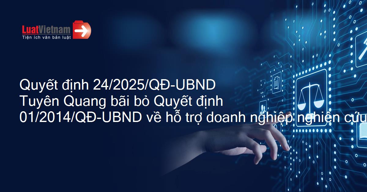 Quyết định 24/2025/QĐ-UBND Tuyên Quang bãi bỏ Quyết định 01/2014/QĐ-UBND về hỗ trợ doanh nghiệp nghiên cứu khoa học