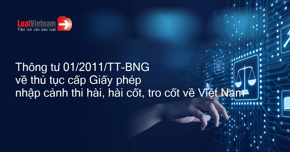 Ngày 20/06/2011, Bộ Ngoại giao đã ra Thông tư số 01/2011/TT-BNG quy định thủ tục cấp Giấy phép nhập cảnh thi hài, hài cốt, tro cốt về Việt Nam (Giấy phép).