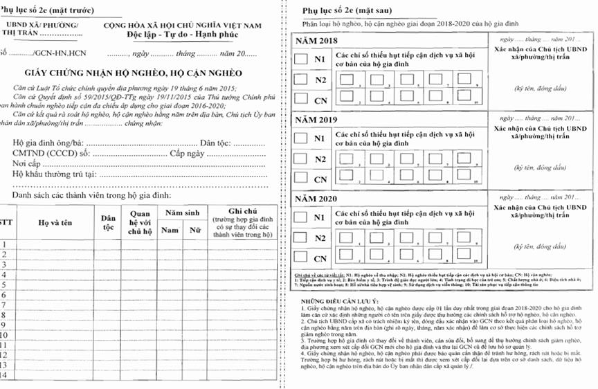 "a) Chủ tịch Ủy ban nhân dân cấp xã căn cứ kết quả phân loại hộ gia đình qua điều tra, rà soát, tiếp thu ý kiến thẩm định của Ủy ban nhân dân cấp huyện để quyết định công nhận danh sách hộ nghèo, hộ cận nghèo, hộ thoát nghèo, hộ thoát cận nghèo trên địa bàn; thực hiện niêm yết công khai danh sách tại trụ sở Ủy ban nhân dân cấp xã và cấp giấy chứng nhận hộ nghèo, hộ cận nghèo cho các hộ nghèo, hộ cận nghèo trên địa bàn theo danh sách hộ nghèo, hộ cận nghèo đã được phê duyệt (theo Phụ lục số 2e ban hành kèm theo Thông tư này hoặc địa phương tự thiết kế mẫu nhưng phải đảm bảo thông tin cơ bản quy định theo mẫu tại Phụ lục số 2e) để phục vụ công tác quản lý đối tượng và thực hiện các chính sách hỗ trợ giảm nghèo của nhà nước;".
