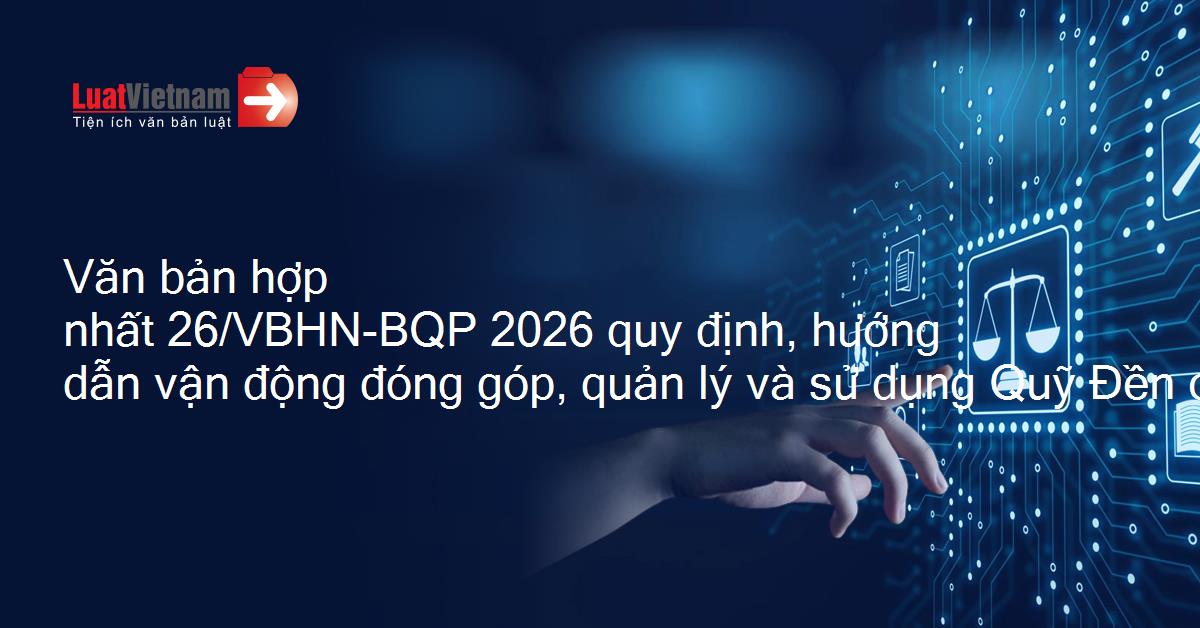 Văn bản hợp nhất 26/VBHN-BQP năm 2026 do Bộ Quốc phòng ban hành hợp nhất Thông tư quy định, hướng dẫn vận động đóng góp, quản lý và sử dụng Quỹ Đền ơn đáp nghĩa trong Bộ Quốc phòng