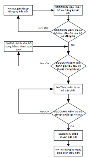 1. “Đối tượng đăng ký kết nối” là các công ty chứng khoán, ngân hàng thương mại, các tổ chức đang thực hiện các thủ tục đăng ký kết nối giao dịch và trao đổi thông tin tới SGDCKHN.