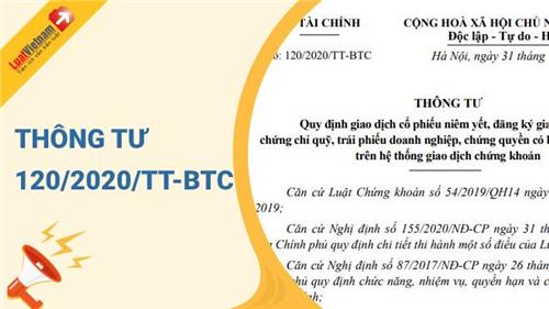Ngày 31/12/2020, Bộ Tài chính đã ban hành Thông tư 120/2020/TT-BTC về việc quy định giao dịch cổ phiếu niêm yết, đăng ký giao dịch và chứng chỉ quỹ, trái phiếu doanh nghiệp, chứng quyền có bảo đảm niêm yết trên hệ thống giao dịch chứng khoán.