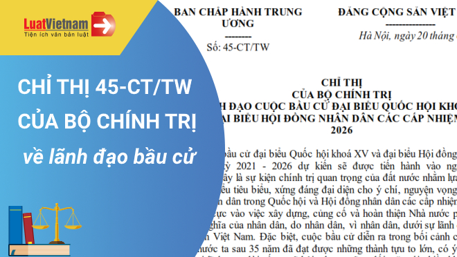 Xem chi tiết Chỉ thị 45-CT/TW có hiệu lực kể từ ngày 20/06/2020