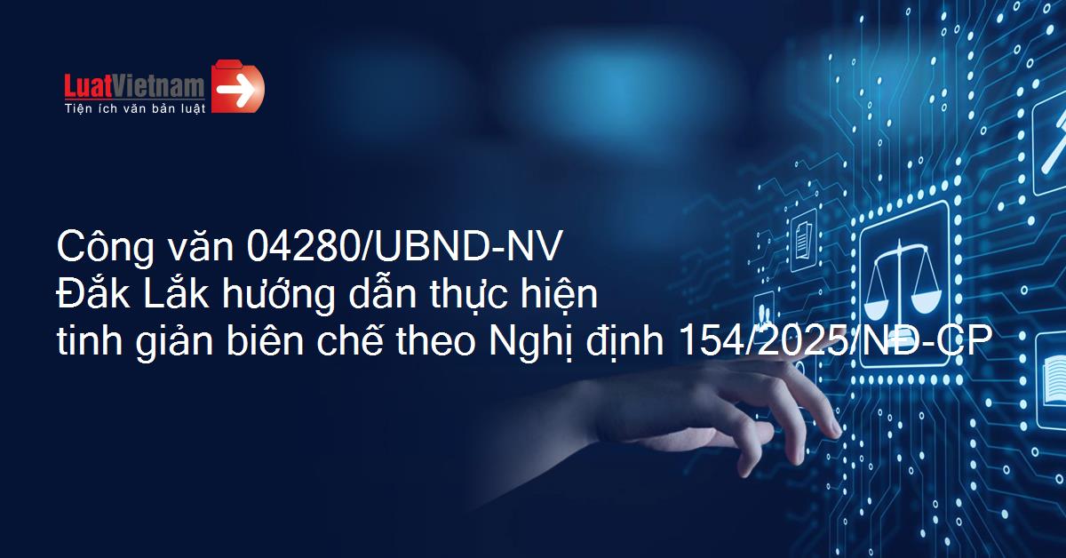 Công văn 04280/UBND-NV Đắk Lắk hướng dẫn thực hiện tinh giản biên chế theo Nghị định 154/2025/NĐ-CP