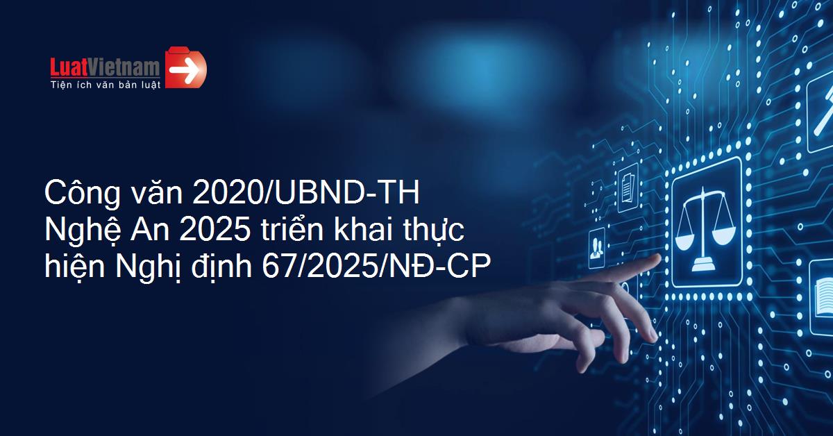 Công văn 2020/UBND-TH của Ủy ban nhân dân tỉnh Nghệ An về việc triển khai thực hiện Nghị định 67/2025/NĐ-CP của Chính phủ