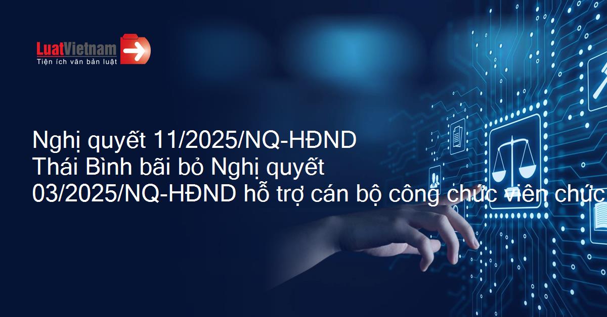 Nghị quyết 11/2025/NQ-HĐND Thái Bình bãi bỏ Nghị quyết 03/2025/NQ-HĐND hỗ trợ cán bộ công chức viên chức