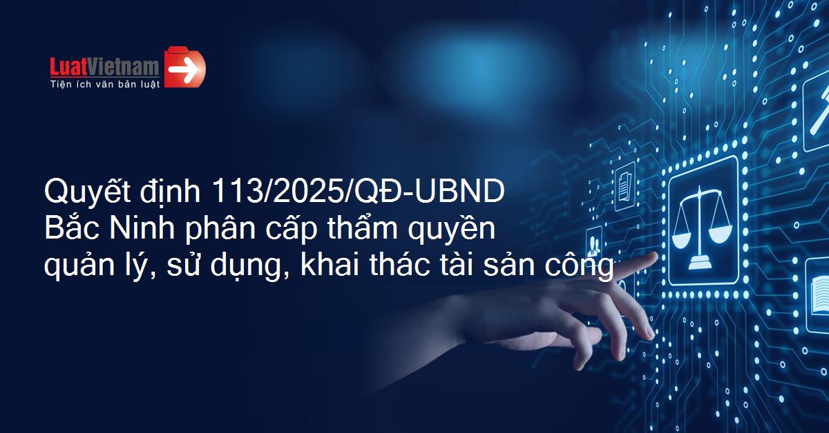 Quyết định 113/2025/QĐ-UBND của Ủy ban nhân dân tỉnh Bắc Ninh phân cấp thẩm quyền quyết định quản lý, sử dụng, khai thác, xử lý tài sản công tại cơ quan, đơn vị thuộc phạm vi quản lý của tỉnh Bắc Ninh