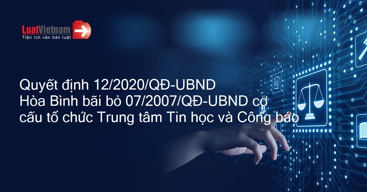 Quyết định 12/2020/QĐ-UBND Hòa Bình bãi bỏ 07/2007/QĐ-UBND cơ cấu tổ chức Trung tâm Tin học và Công báo