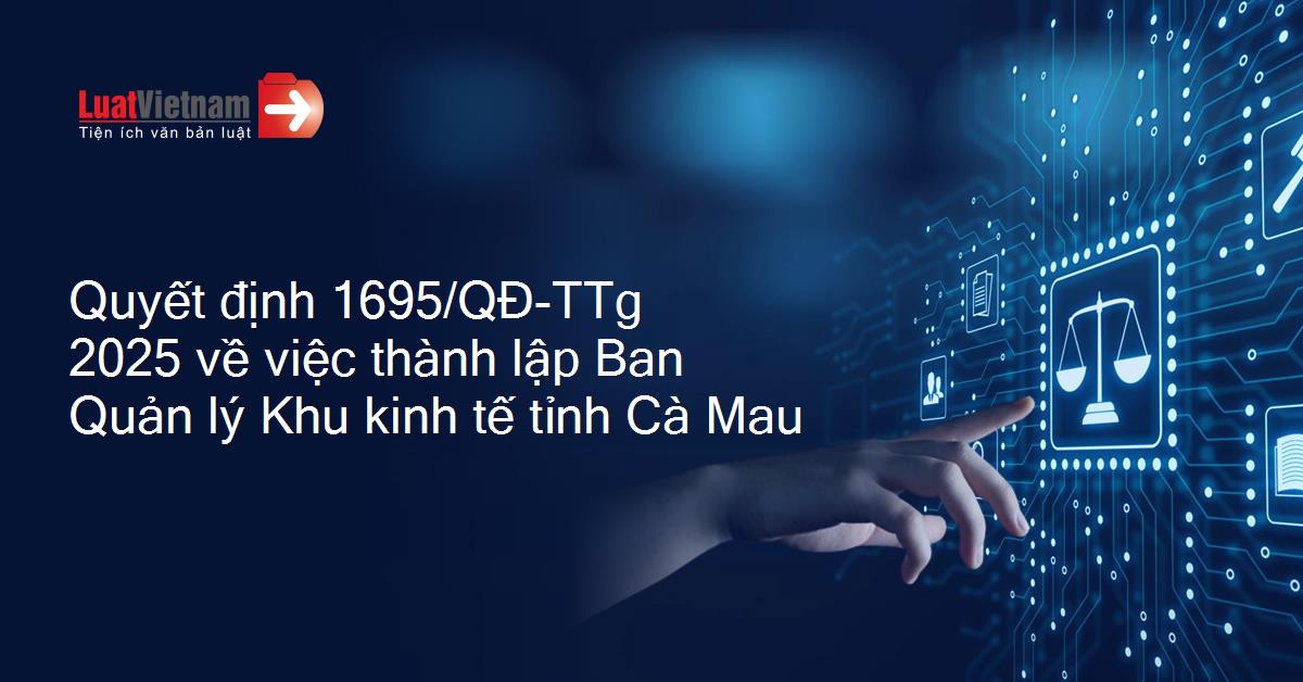 Quyết định 1695/QĐ-TTg 2025 về việc thành lập Ban Quản lý Khu kinh tế tỉnh Cà Mau