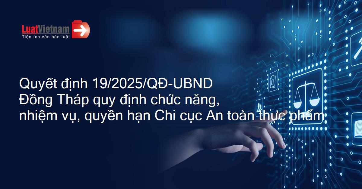 Quyết định 19/2025/QĐ-UBND Đồng Tháp quy định chức năng, nhiệm vụ, quyền hạn Chi cục An toàn thực phẩm