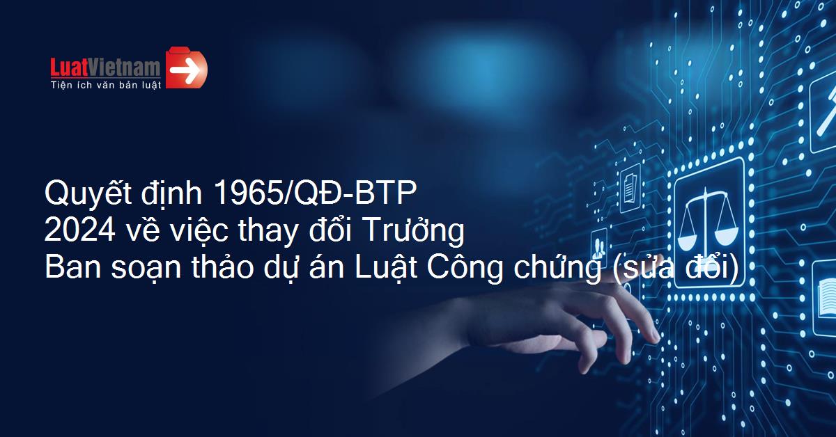 Quyết định 1965/QĐ-BTP 2024 về việc thay đổi Trưởng Ban soạn thảo dự án Luật Công chứng (sửa đổi)