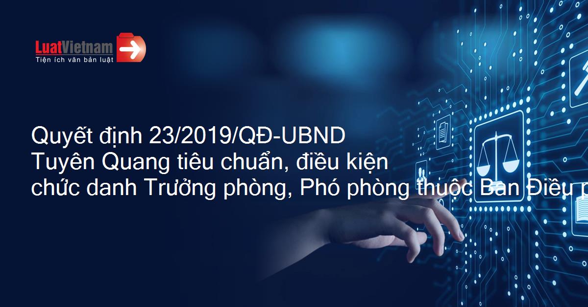 Quyết định 23/2019/QĐ-UBND Tuyên Quang tiêu chuẩn, điều kiện chức danh Trưởng phòng, Phó phòng thuộc Ban Điều phối các dự án vốn nước ngoài