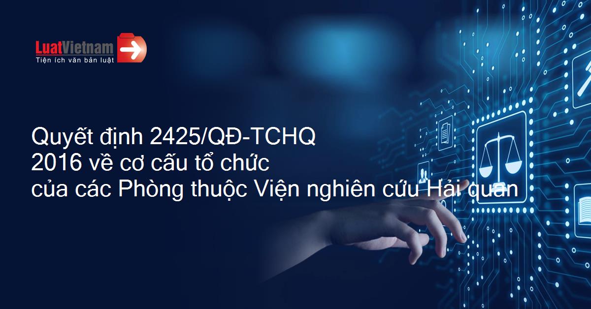 | BỘ TÀI CHÍNH TỔNG CỤC HẢI QUAN ------- Số: 2425/QĐ-TCHQ | CỘNG HÒA XÃ HỘI CHỦ NGHĨA VIỆT NAM Độc lập - Tự do - Hạnh phúc --------------- Hà Nội, ngày 01 tháng 08 năm 2016 |