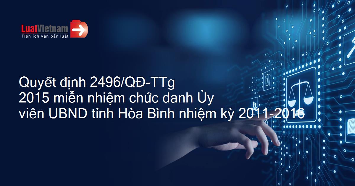 Quyết định 2496/QĐ-TTg 2015 miễn nhiệm chức danh Ủy viên UBND tỉnh Hòa Bình nhiệm kỳ 2011-2016