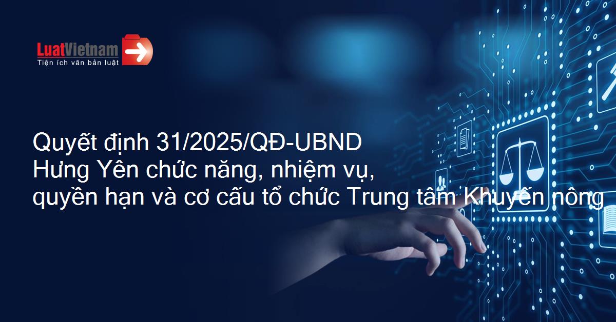 Quyết định 31/2025/QĐ-UBND của Ủy ban nhân dân tỉnh Hưng Yên về việc quy định chức năng, nhiệm vụ, quyền hạn và cơ cấu tổ chức của Trung tâm Khuyến nông thuộc Sở Nông nghiệp và Môi trường tỉnh Hưng Yên