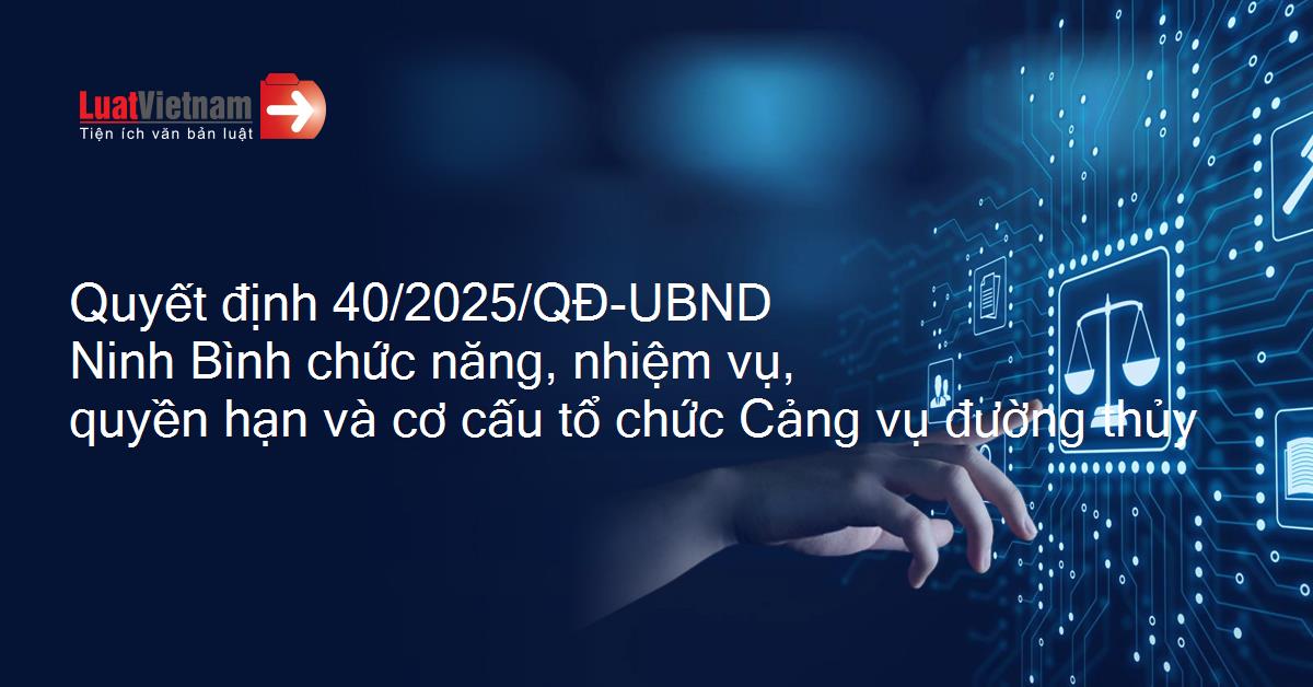 Quyết định 40/2025/QĐ-UBND của Ủy ban nhân dân tỉnh Ninh Bình ban hành Quy định chức năng, nhiệm vụ, quyền hạn và cơ cấu tổ chức của Cảng vụ đường thủy nội địa thuộc Sở Xây dựng tỉnh Ninh Bình