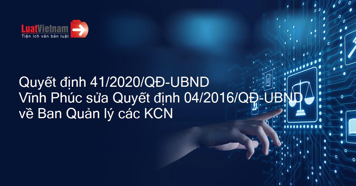 Quyết định 41/2020/QĐ-UBND Vĩnh Phúc sửa Quyết định 04/2016/QĐ-UBND về Ban Quản lý các KCN