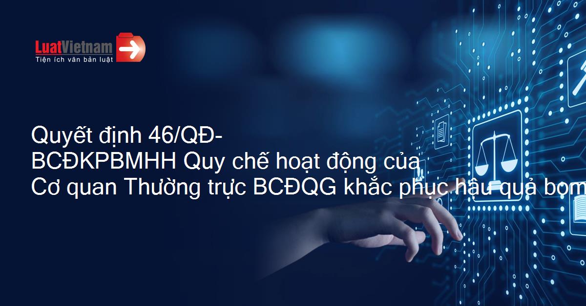 Quyết định 46/QĐ- BCĐKPBMHH Quy chế hoạt động của Cơ quan Thường trực BCĐQG khắc phục hậu quả bom mìn và chất hóa học
