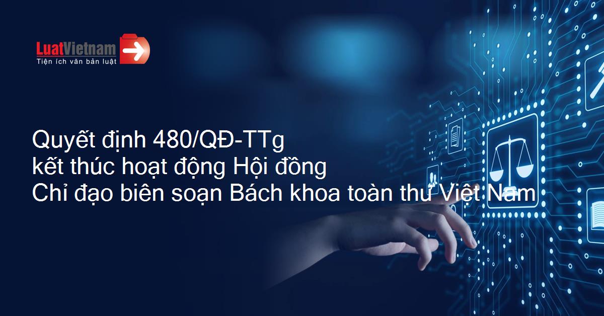 Ngày 29/3/2021, Thủ tướng Chính phủ ban hành Quyết định 480/QĐ-TTg về việc kết thúc hoạt động của Hội đồng Chỉ đạo biên soạn Bách khoa toàn thư Việt Nam.