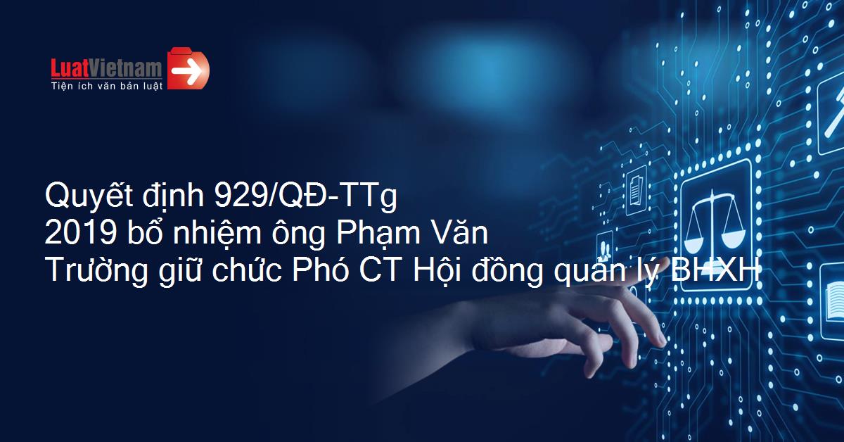 Quyết định 929/QĐ-TTg 2019 bổ nhiệm ông Phạm Văn Trường giữ chức Phó CT Hội đồng quản lý BHXH