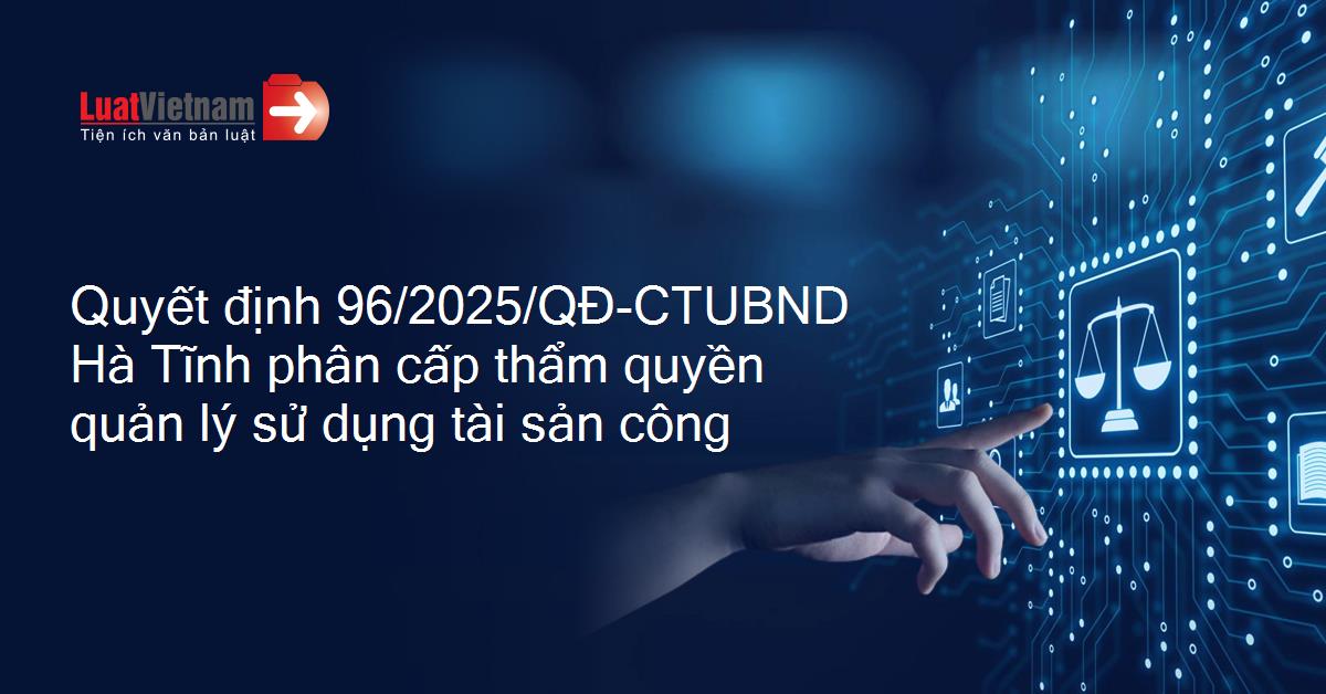 Quyết định 96/2025/QĐ-CTUBND của Chủ tịch Ủy ban nhân dân tỉnh Hà Tĩnh phân cấp thẩm quyền trong quản lý, sử dụng tài sản công trên địa bàn tỉnh Hà Tĩnh