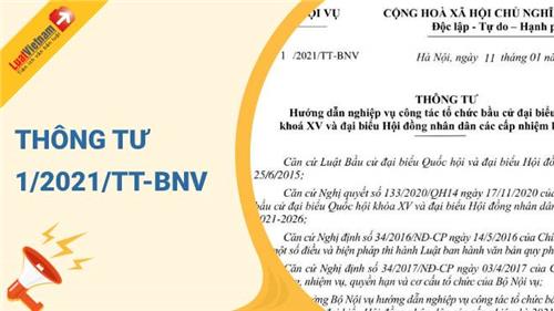 Ngày 11/01/2021, Bộ Nội vụ ban hành Thông tư 01/2021/TT-BNV về việc hướng dẫn nghiệp vụ công tác tổ chức bầu cử đại biểu Quốc hội khóa XV và đại biểu Hội đồng nhân dân các cấp nhiệm kỳ 2021-2026.