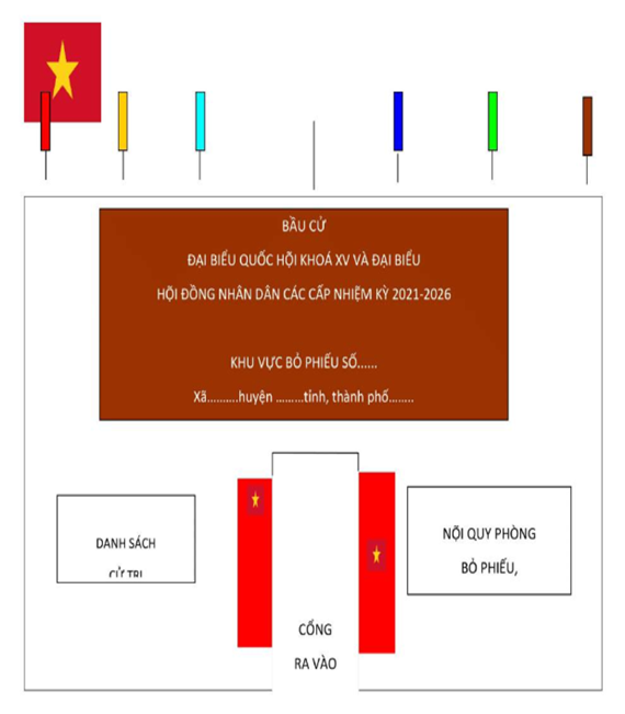 (Cổng ra - vào và khu vực bên ngoài phòng bỏ phiếu được trang trí theo Mẫu số 01 ban hành kèm theo Thông tư này).