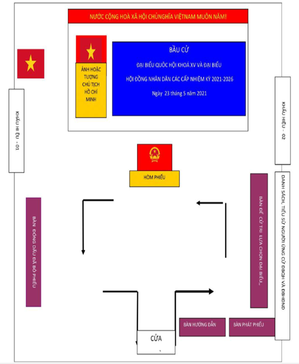 (Khu vực bên trong phòng bỏ phiếu được trang trí theo Mẫu số 02 ban hành kèm theo Thông tu này).
