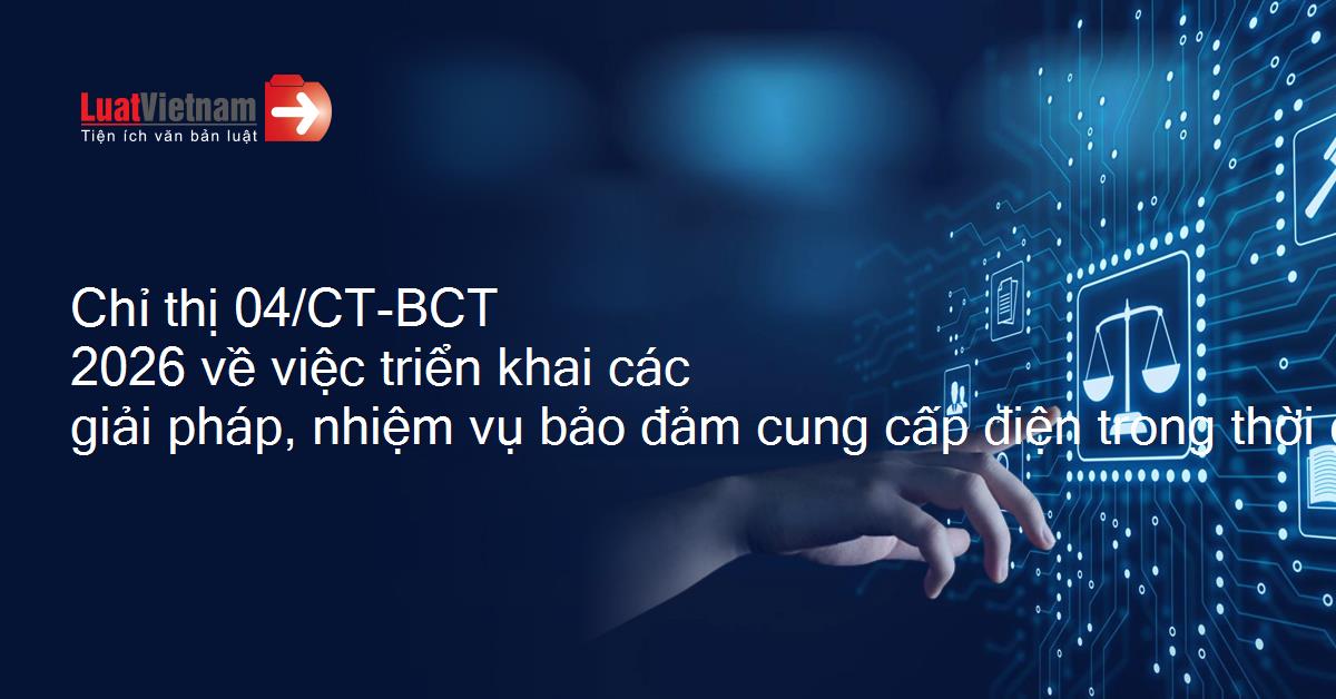 Chỉ thị 04/CT-BCT của Bộ Công Thương về việc triển khai các giải pháp, nhiệm vụ bảo đảm cung cấp điện trong thời gian cao điểm năm 2026 và giai đoạn 2027-2030, thúc đẩy tiến độ các dự án nguồn, lưới điện trọng điểm
