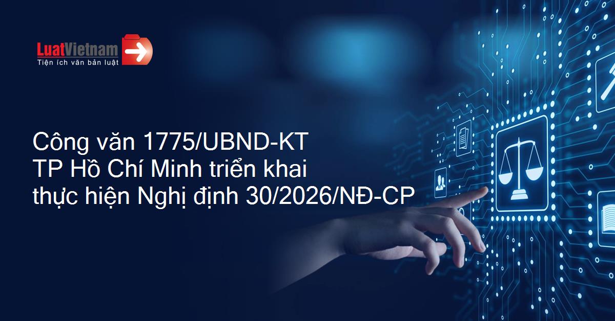 Công văn 1775/UBND-KT của Ủy ban nhân dân Thành phố Hồ Chí Minh về việc triển khai thực hiện Nghị định 30/2026/NĐ-CP ngày 21/01/2026 của Chính phủ