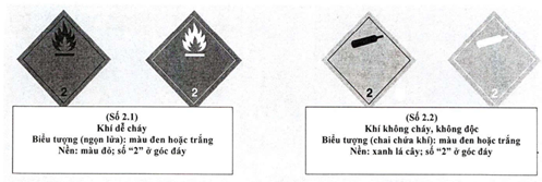 - Loại 2. Khí gồm 3 nhóm: Nhóm 2.1: Khí dễ cháy; nhóm 2.2: Khí không dễ cháy, không độc hại; nhóm 2.3: Khí độc hại.