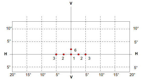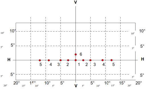 Để xác định độ sắc nét tối thiểu, các phép đo sẽ được thực hiện bằng cách quét theo chiều dọc qua một phần của đường ranh giới nằm ngang với bước nhảy 0,05º hoặc 22 mm tại những khoảng cách đo khác nhau: