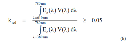 Cùng với phương pháp đo như mô tả trong điểm 3 Phụ lục G, H của Quy chuẩn này, phần màu đỏ tối thiểu của ánh sáng cụm đèn LED hoặc đèn kết hợp với cụm đèn LED thử nghiệm tại 50V như sau: