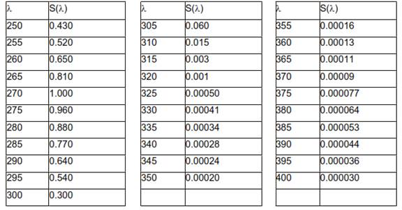 Giá trị này sẽ được tính bằng cách sử dụng đơn vị đo nanometrer. Tia bức xạ UV sẽ có tỷ trọng dựa theo giá trị như chỉ dẫn tại bảng UV bên dưới: