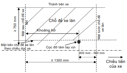 2.2.1.2.1. Chỗ để xe lăn phải phù hợp với những yêu cầu sau: