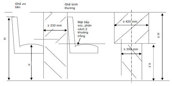 Hình 6: Kích thước các khoảng trống tại nơi có ghế ưu tiên