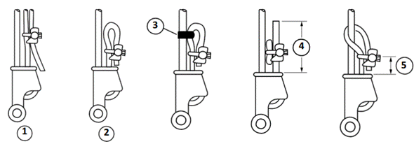 (1) Việc quy định tải trọng làm việc an toàn cho hệ cần trục dây giằng làm việc ghép đôi là xác định tải trọng làm việc an toàn và góc lớn nhất giữa hai dây nâng hàng hoặc tải trọng làm việc an toàn và chiều cao nâng cho phép (khoảng cách thẳng đứng giữa vị trí cao nhất của kết cấu trên boong thượng có miệng hầm hàng và tấm mã tam giác hoặc khuyên tròn bắt với dây cáp nâng hàng).