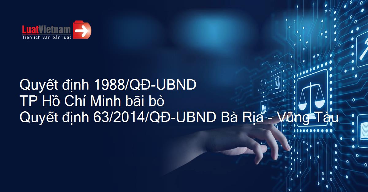 Quyết định 1988/QĐ-UBND TP Hồ Chí Minh bãi bỏ Quyết định 63/2014/QĐ-UBND Bà Rịa - Vũng Tàu